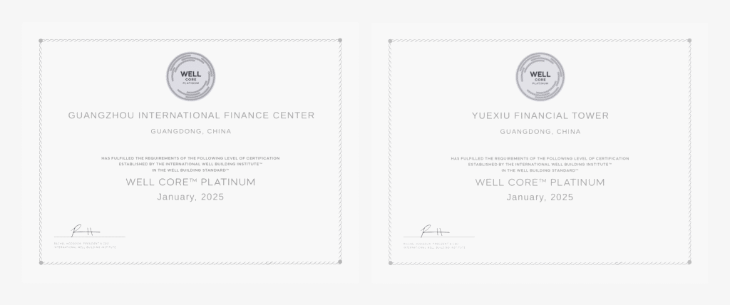 日前,越秀房产基金旗下多项物业集体斩获WELL健康建筑标准认可的里程碑式突破,达成其在中国商业地产ESG赛道的又一次积极探索与实践成果。其中,广州国际金融中心写字楼和越秀金融大厦以优异表现高分通过铂金级WELL认证,成为珠江新城CBD唯二获得LEED与WELL双铂金级认证的项目,彰显我们打造商办领域健康建筑标准「中国样本」的杰出成就。同时,广州国际金融中心商场、财富广场、城建大厦、维多利广场、武汉越秀财富中心、武汉星汇维港购物中心、上海越秀大厦和杭州维多利中心获得WELL健康-安全评级(WELL HSR)认可。