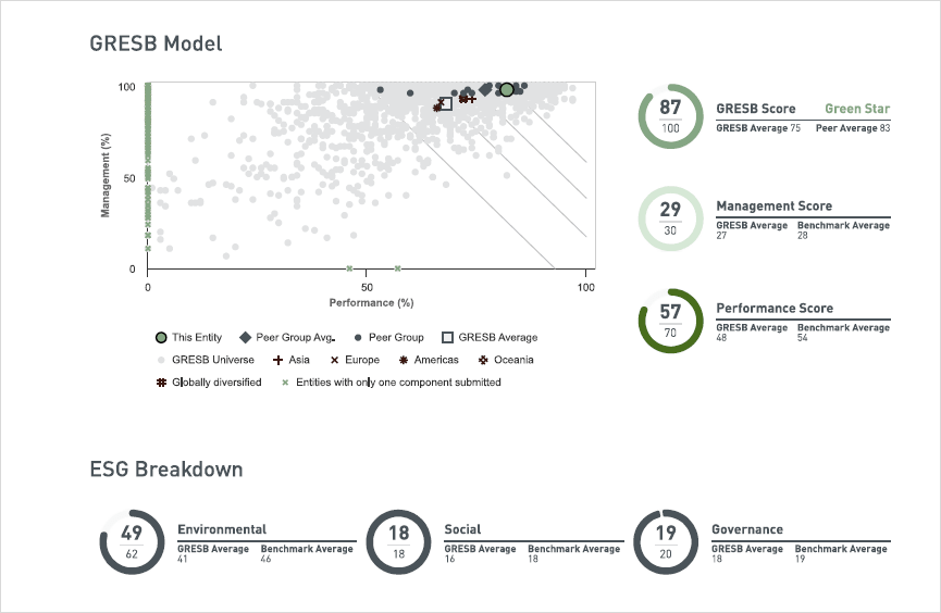 Established in 2009, GRESB is the world's leading ESG benchmark for real estate and infrastructure investments, providing standardized and verified ESG information for financial markets. More than 150 institutions and financial investors are using GRESB in their decision-making. In 2023, 2,084 listed and unlisted real estate investment portfolios participated in the rating, representing approximately USD 7.2 trillion of gross asset value (GAV) across 75 countries and regions. (Source: GRESB website)