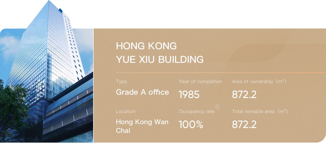 The Property portfolio of Yuexiu REIT comprises ten high quality properties, namely White Horse Building, Fortune Plaza, City Development Plaza, Victory Plaza, GZIFC, Yuexiu Financial Tower, Shanghai Yuexiu Tower, Wuhan Properties, Hangzhou Victory Business Centre, Hong Kong Yue Xiu Building. The overview of the Properties is as follows: