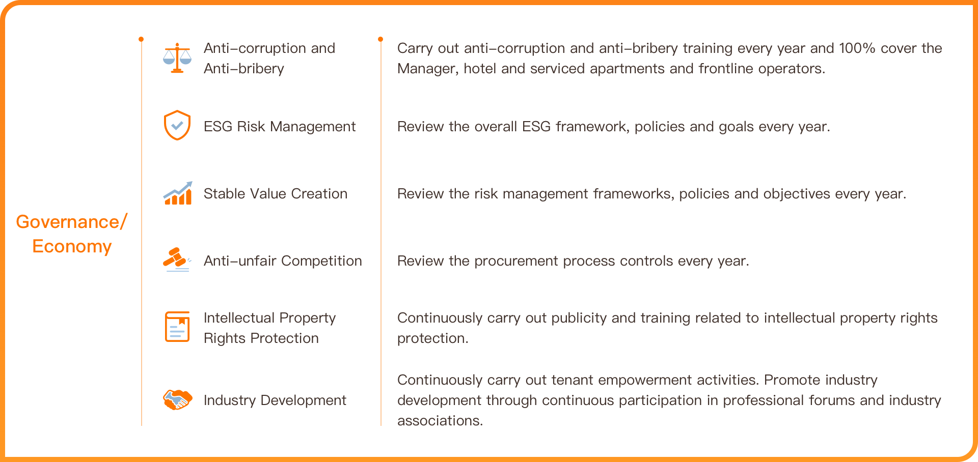 Offer tenants and customers outstanding services, provide a harmonious working environment for employees, provide constant and stable returns for unitholders and create higher economic value for stakeholders.