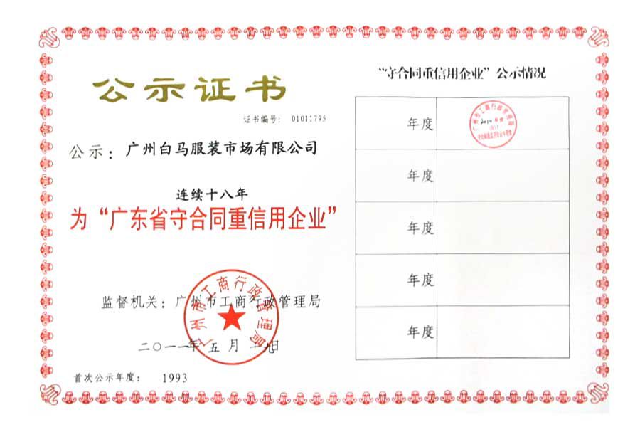 2011-白马公司获“连续十八年广东省守合同重信用企业