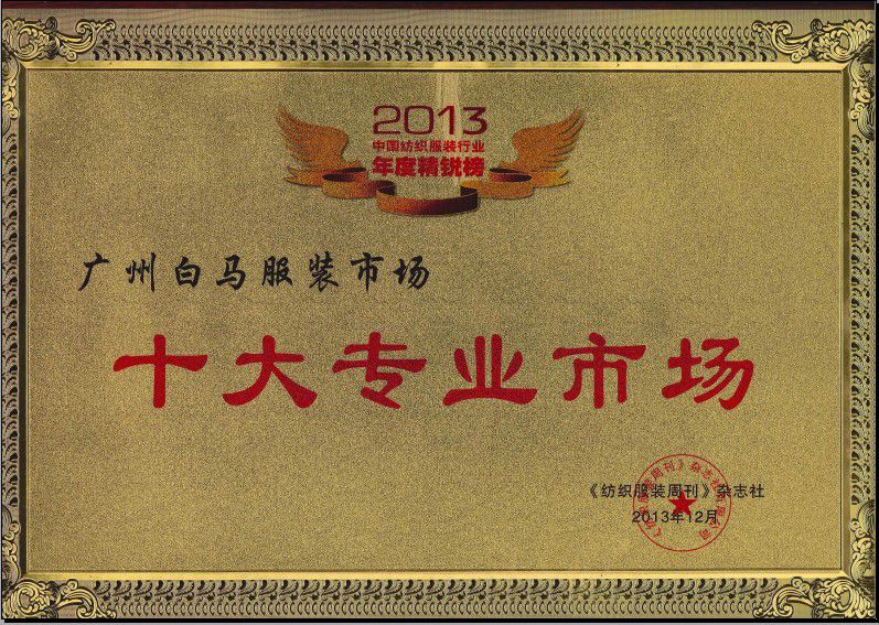 2011-白马公司获“热心支持广州服装行业发展奖”